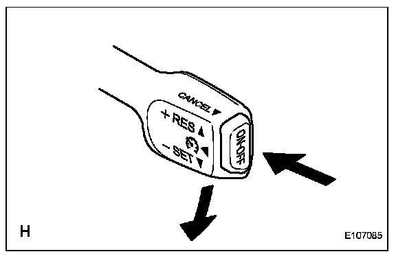 5. Push the cruise control main switch to - (COAST)/SET, and then release it immediately. Check that vehicle speed decreases by approximately 1.6 km/h (1.0 mph) (tap-down control).