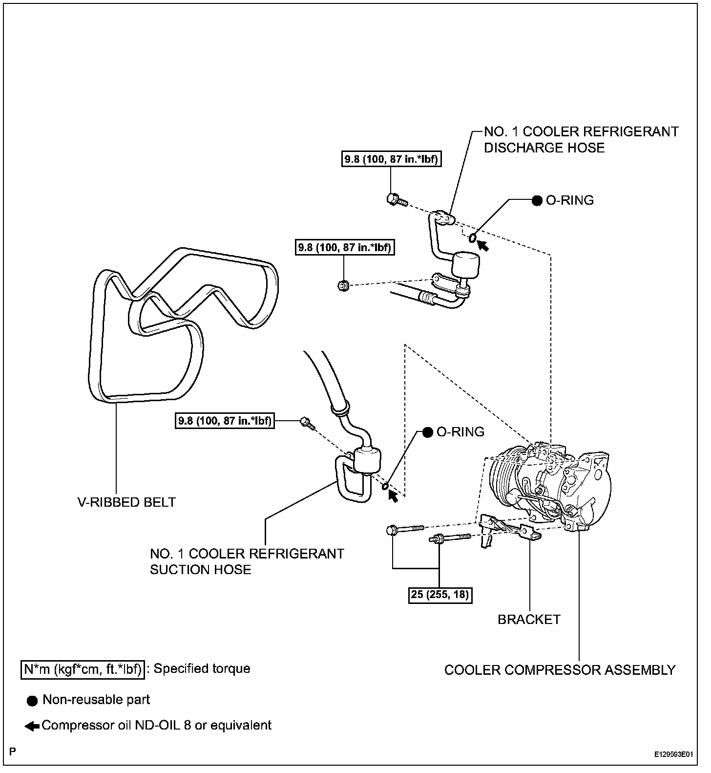 b. Remove the O-ring from the No.1 cooler refrigerant discharge hose.