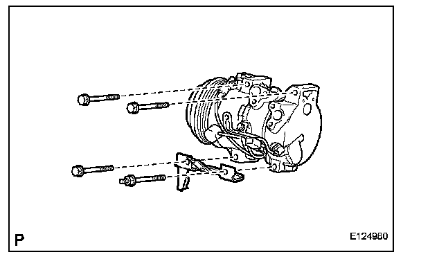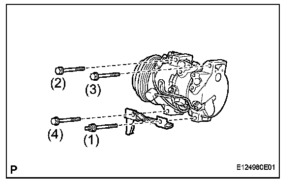 a. Temporarily tighten the compressor and magnetic clutch and bracket with the 4 bolts.