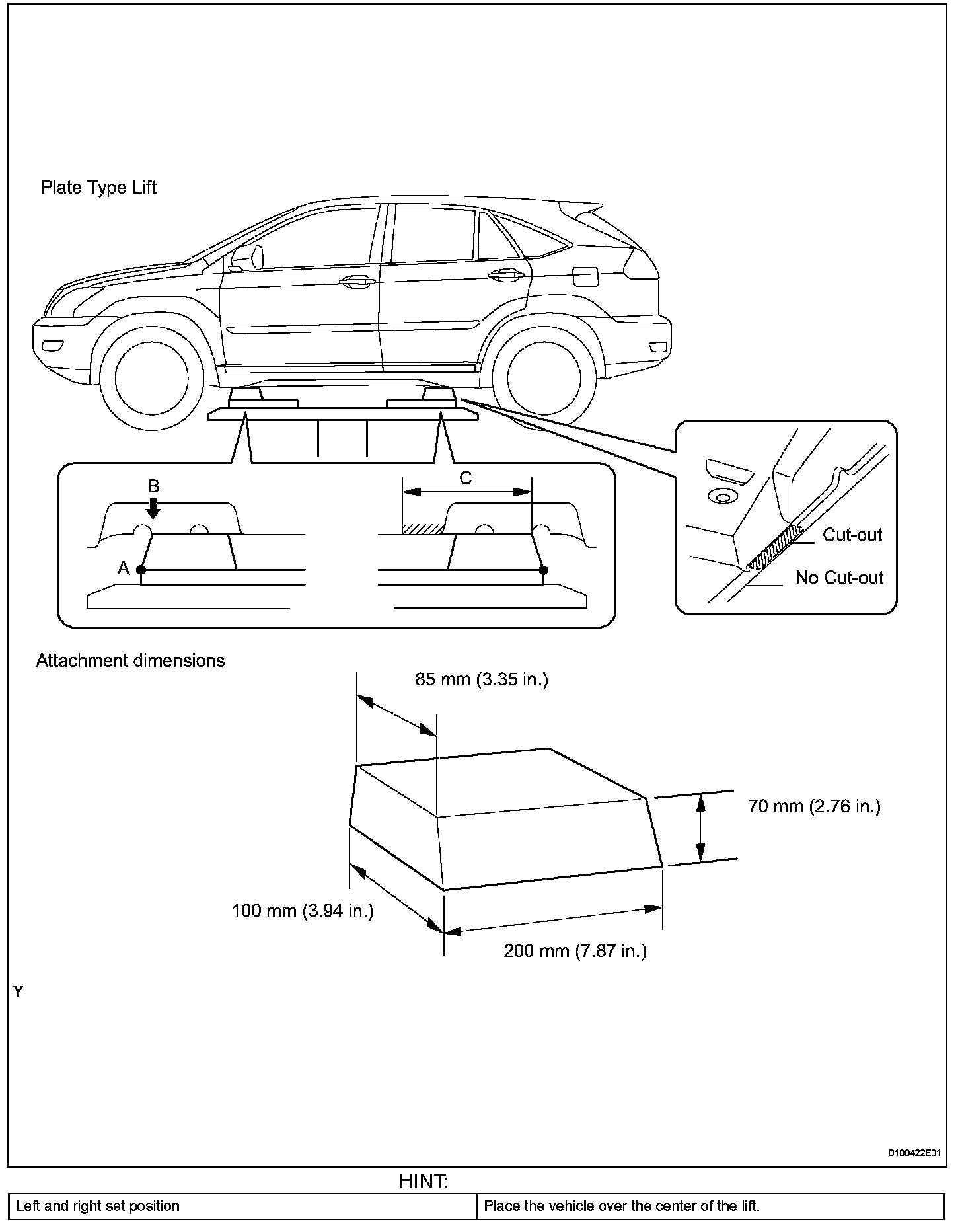 NOTE: Do not set an attachment onto any areas other than area (C) of the body rocker panel moulding indicated in the illustration.