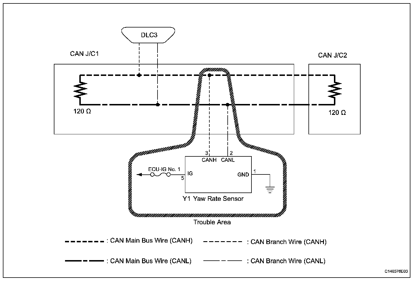 "YAW/DECELERAT" refers to the circuit that includes the yaw rate sensor.