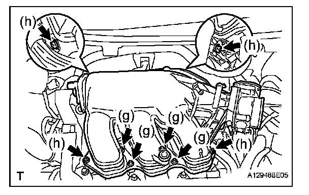 h. Remove the 2 nuts, 2 bolts and intake air surge tank.