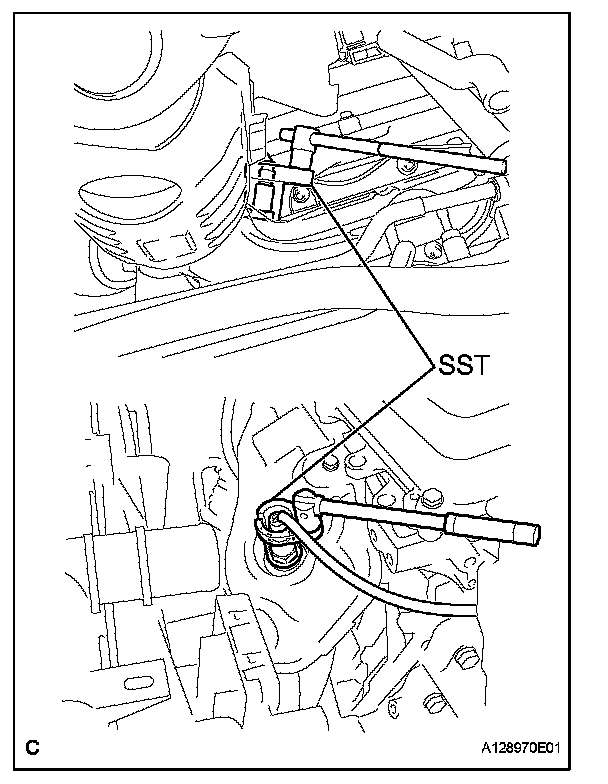 b. Using SST, remove the air fuel ratio sensor from the exhaust manifold converter sub-assembly.