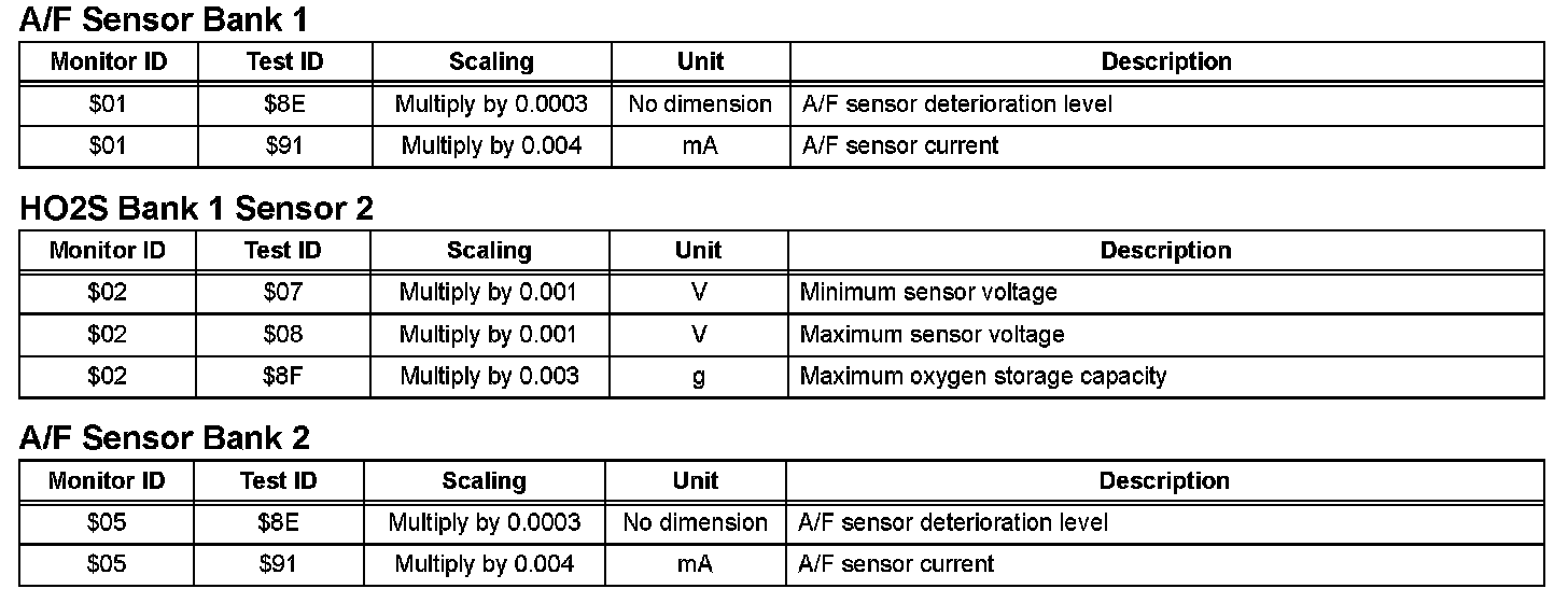 If you use a generic scan tool, multiply the test value by the scaling value listed.