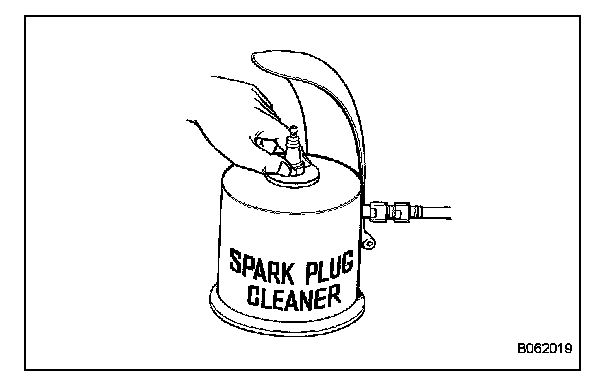 HINT: Only use the spark plug cleaner when the electrode is free of oil. If the electrode has traces of oil, use gasoline to clean off the oil before using the spark plug cleaner.