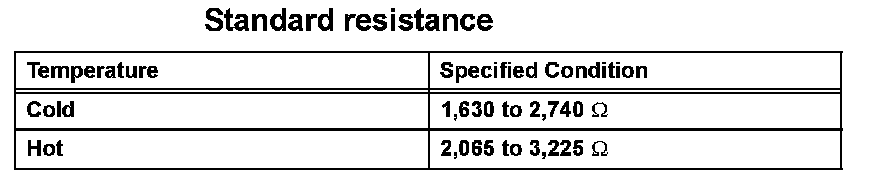 ON-VEHICLE INSPECTIONNOTE: In this section, the terms "cold" and "hot" refer to the temperature of the coils. "Cold" means approximately -10 °C (14 °F) to 50 °C (122 °F). "HOT" means approximately 50 °C (122 °F) to 100 °C (212 °F).