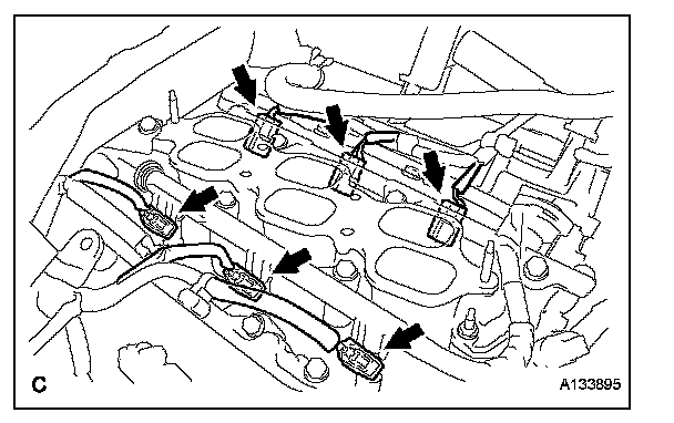 e. Install the 6 ignition coils with the 6 bolts and connect the 6 ignition coil connectors.