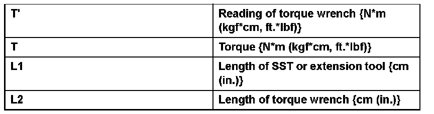 1. Use the formula below to calculate special torque values for situations where SST or an extension tool is combined with the torque wrench.