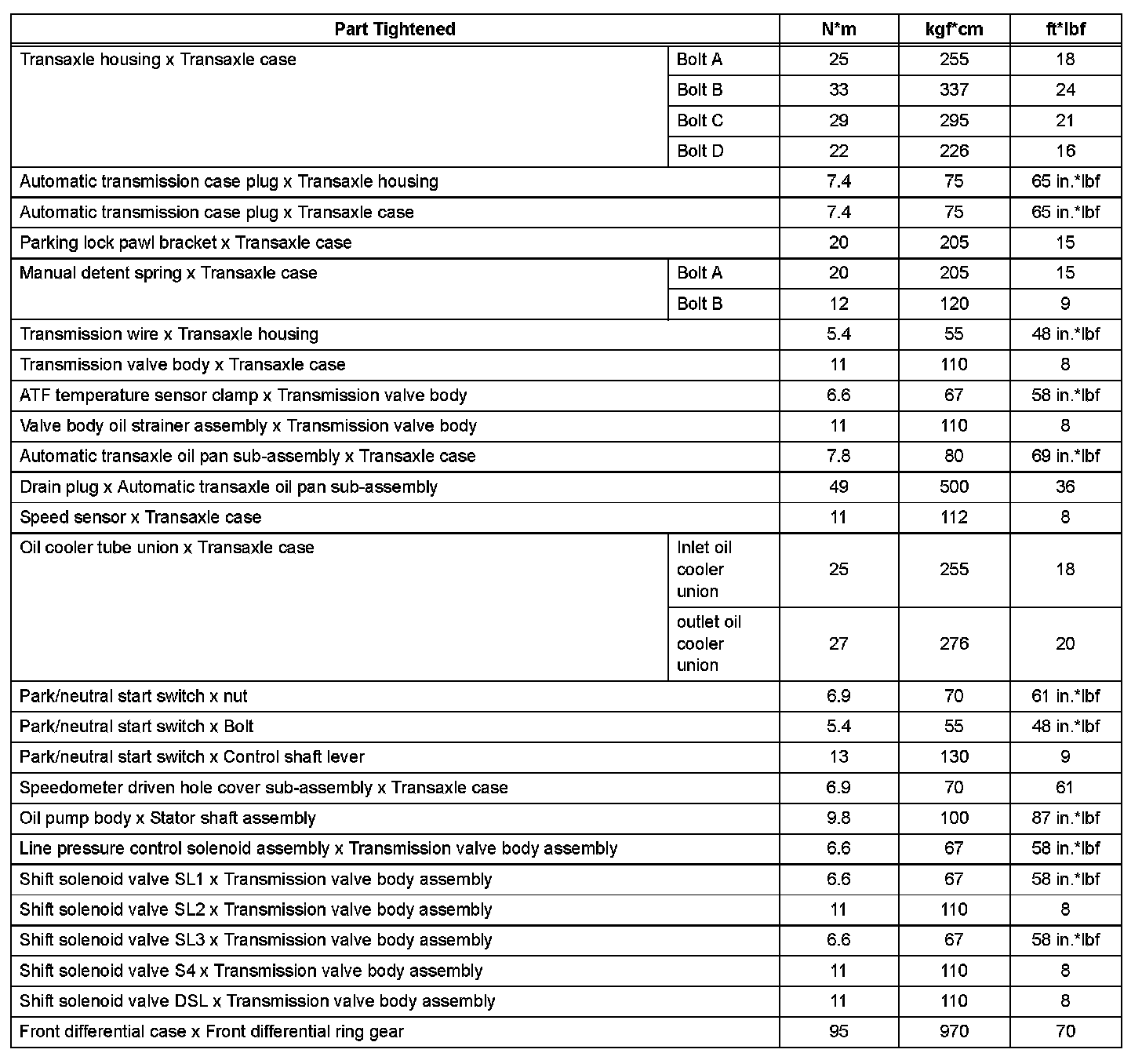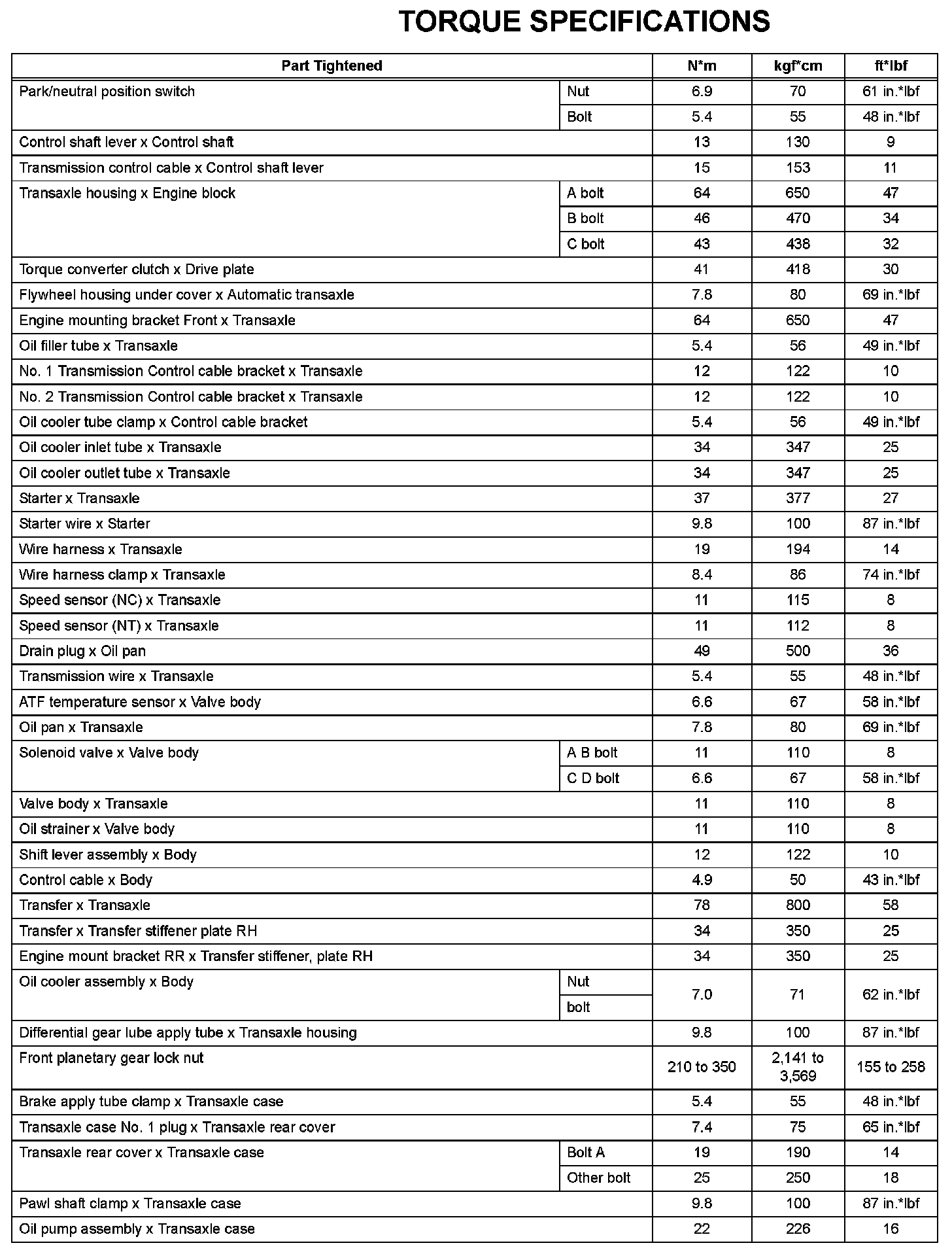 Automatic Transaxle - Torque Specifications (Part 2):