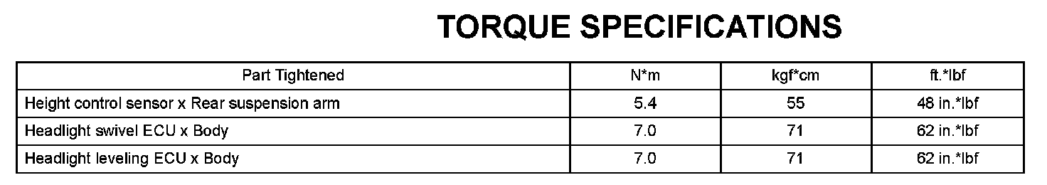 Lighting - Torque Specifications: