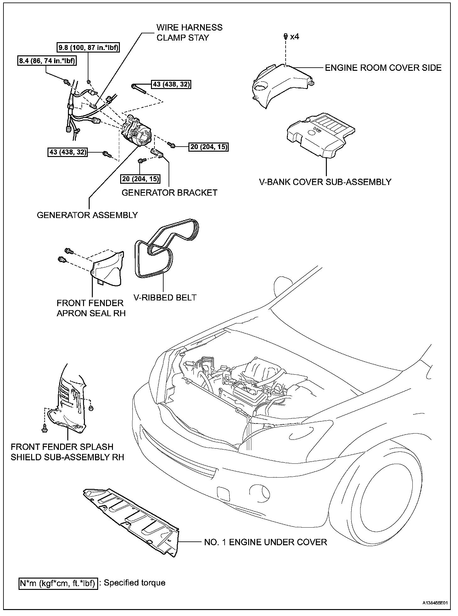 Torque: 43 N.m (438 kgf.cm, 32 ft.lbf)