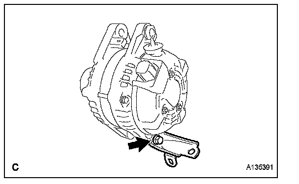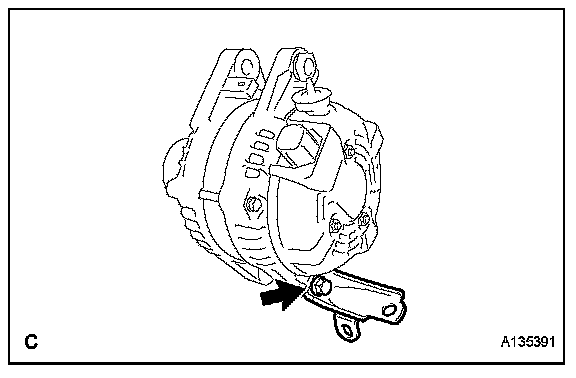b. Remove the nut and disconnect the wire harness from terminal B.