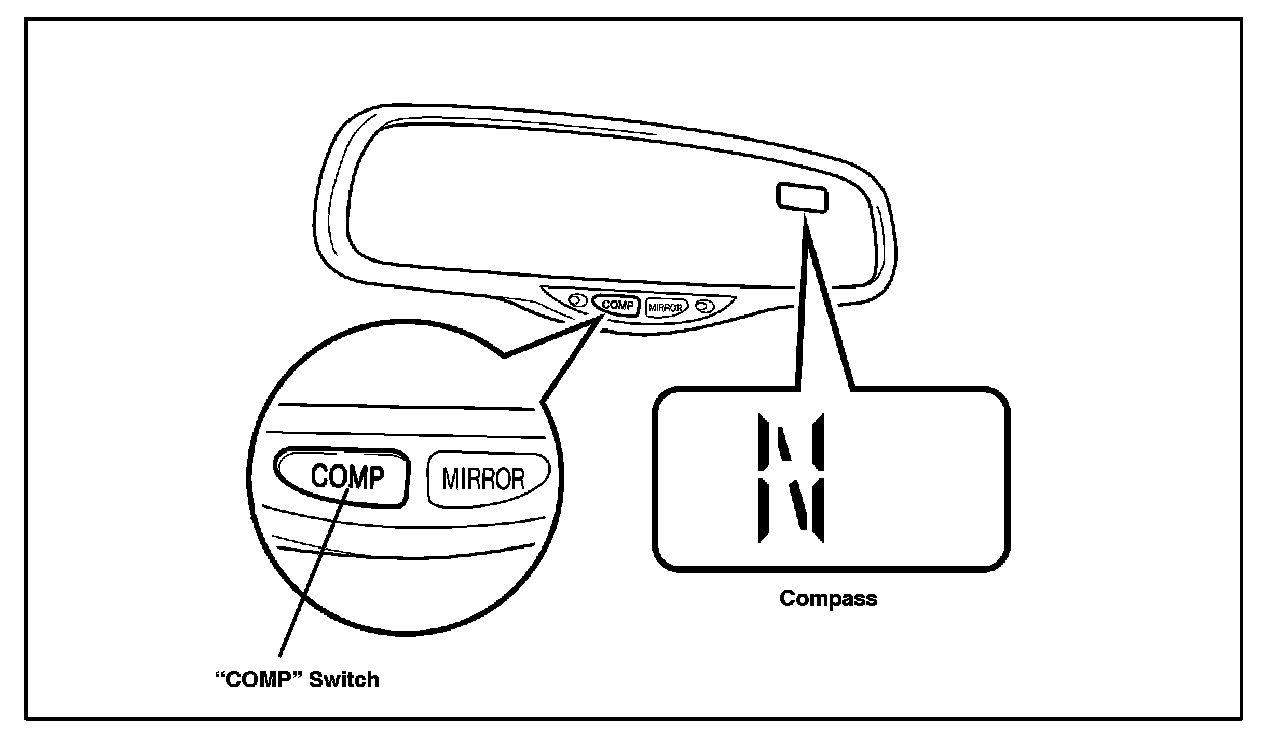 1. Turn the ignition switch to the "ON" position and check that the direction (N, NE, E, SE, S, SW, W, NW) appears on the compass display.