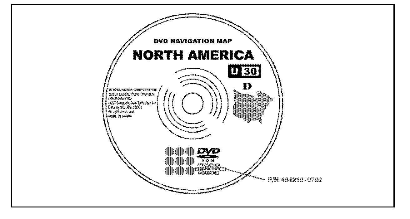 The map disc supplier part number changed to 464210-0792. Refer to the illustration to locate the supplier's part number (directly below the OEM part number).