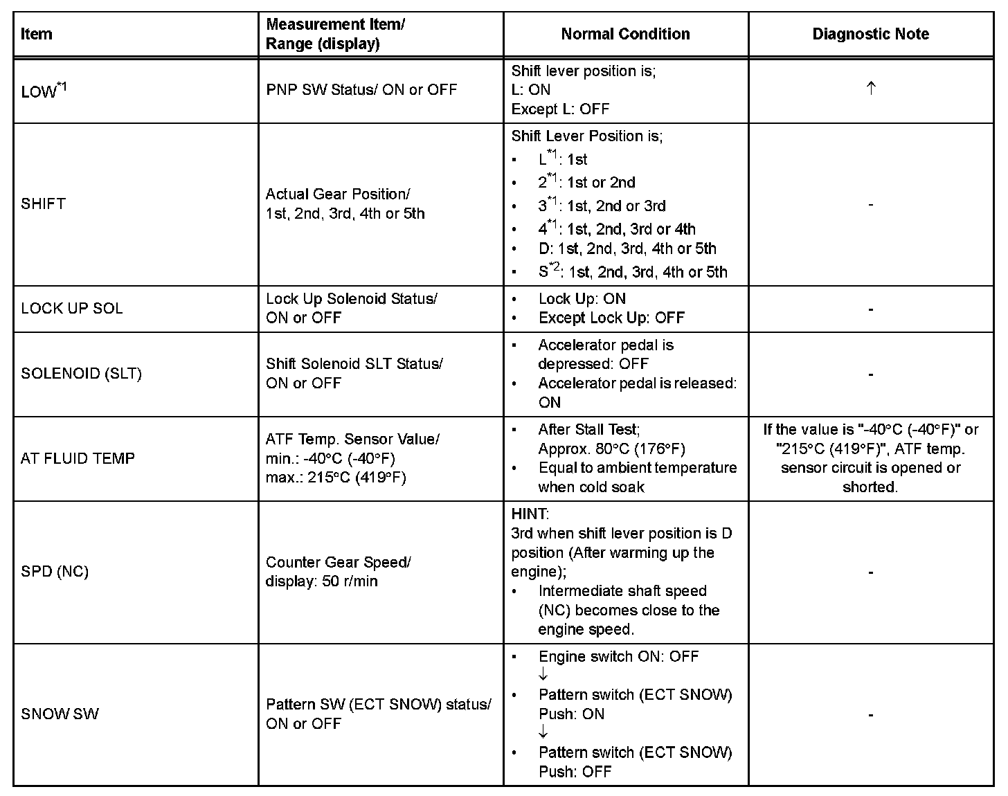 HINT: According to the DATA LIST displayed by the intelligent tester, you can read the value of the switch, sensor, actuator and so on without parts removal. Reading the DATA LIST as the first step of troubleshooting is one method to shorten labor time.