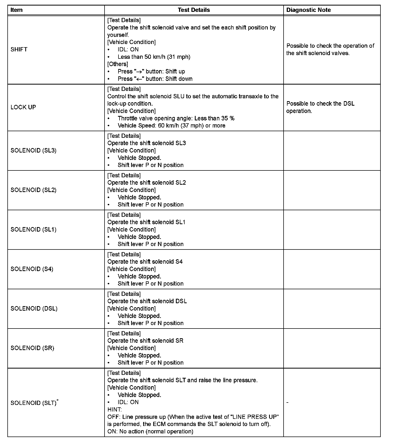 *: "LINE PRESS UP" in the ACTIVE TEST is performed to check the line pressure changes by connecting the SST to the automatic transaxle, which is used in the HYDRAULIC TEST as well. Hydraulic Test