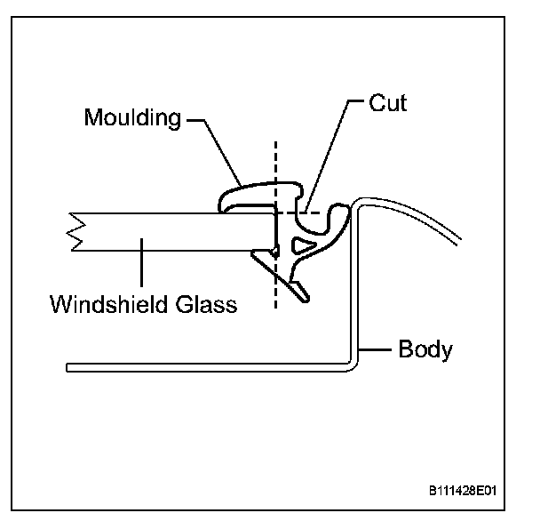 NOTICE: Leave as much adhesive on the vehicle body as possible when removing the glass.
