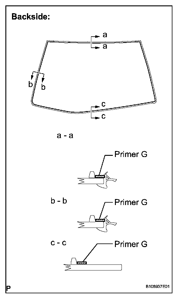 a. Using a brush or sponge, coat the edge of the glass and the contact surface with Primer G.
