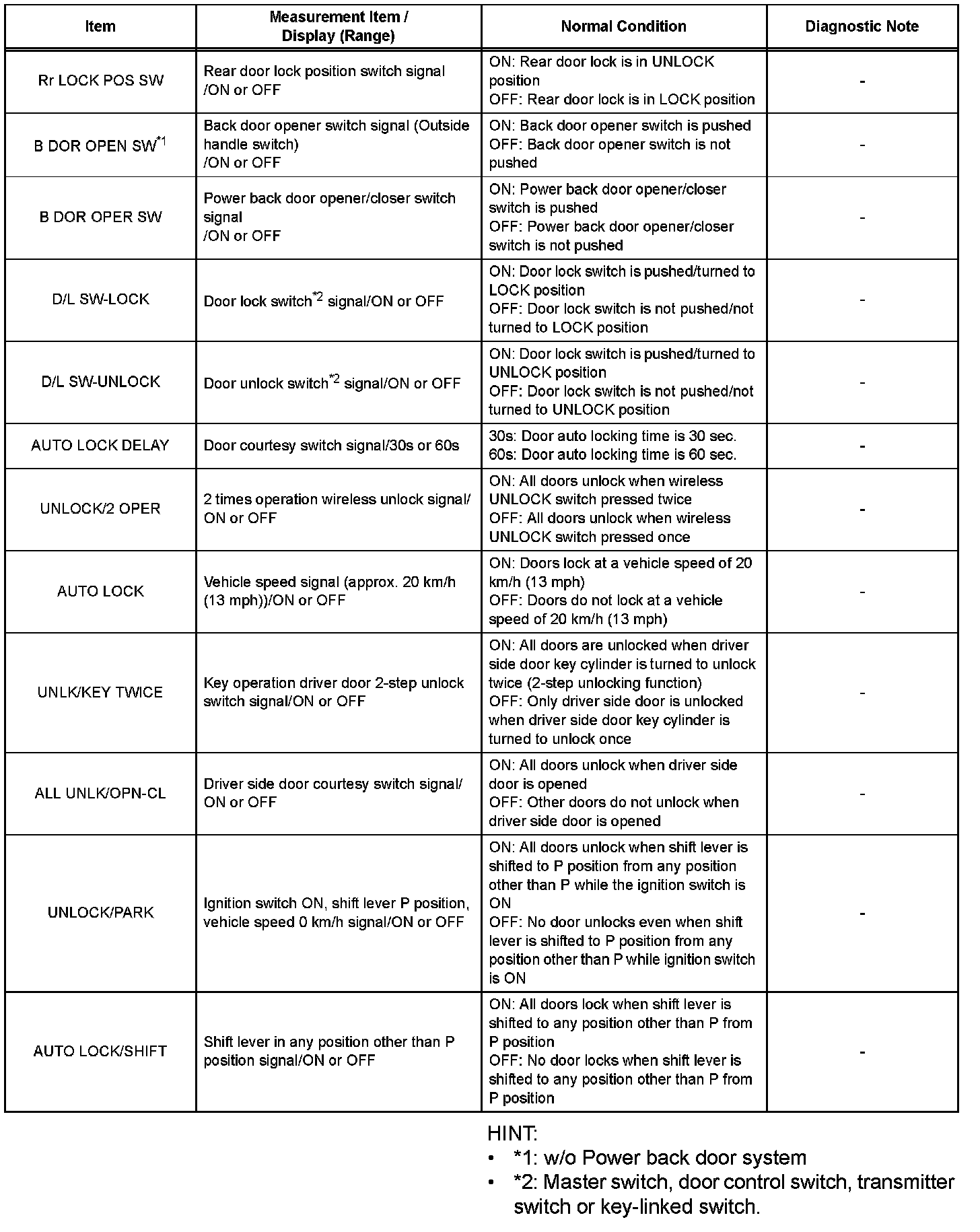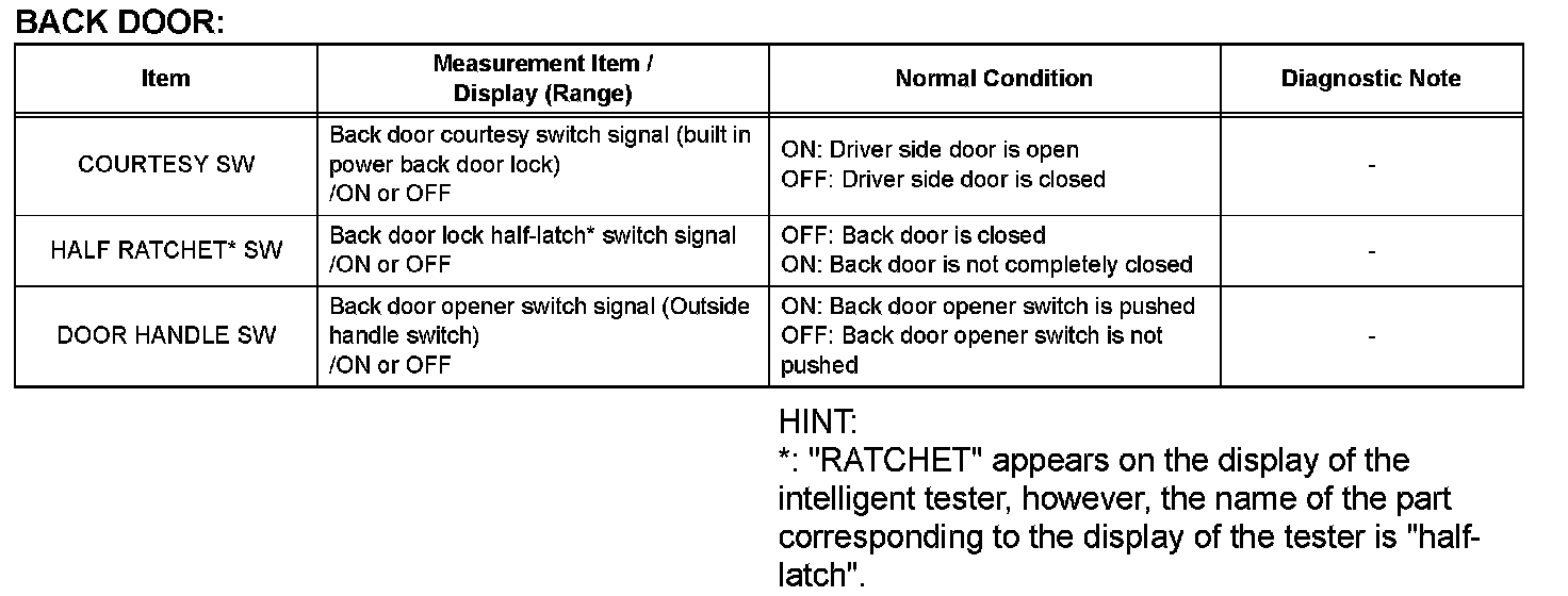 READ DATA LISTHINT: Using the intelligent tester's DATA LIST allows switch, actuator and other item values to be read without removing any parts. Reading the DATA LIST early in troubleshooting is one way to save time.