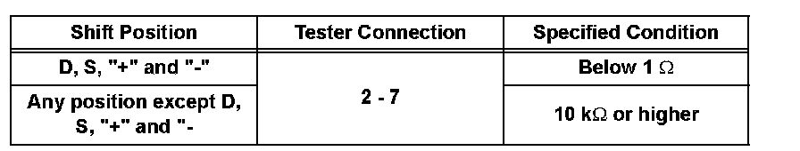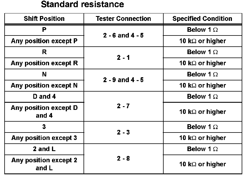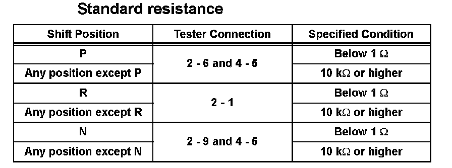 (c) Shift lever with multi-mode automatic transmission type: Measure the resistance according to the value(s) in the table when the shift lever is moved to each position.