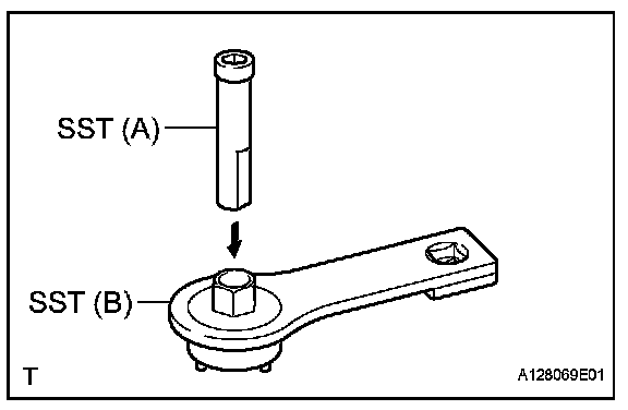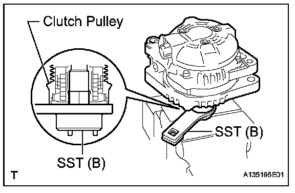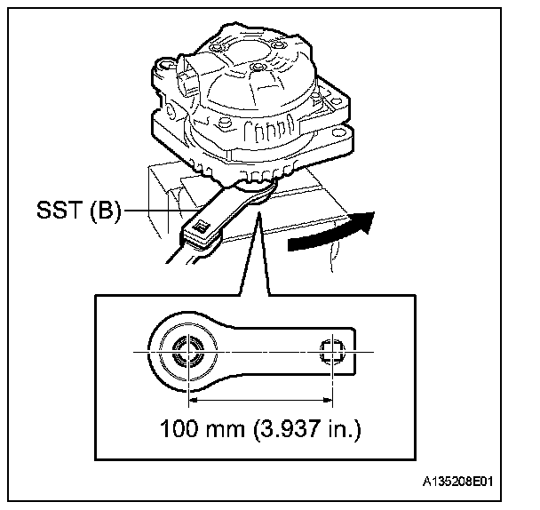 f. Tighten the pulley by turning SST (B) in the direction given in the illustration.