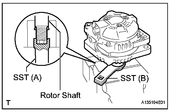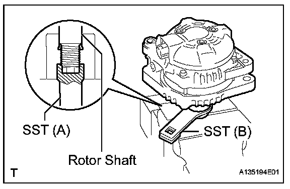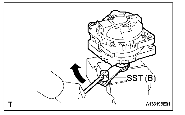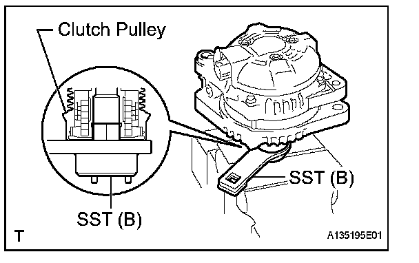 f. Loosen the pulley by turning SST (B) in the direction given in the illustration.