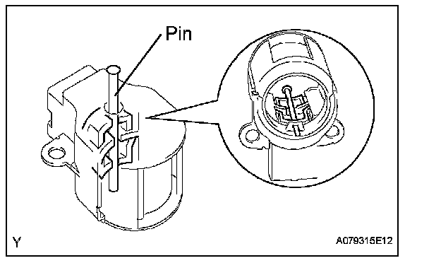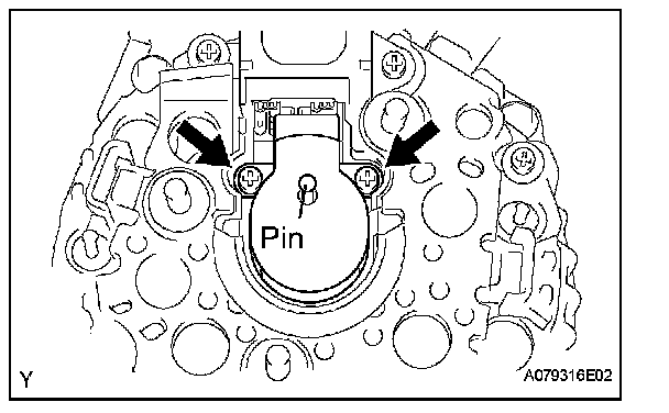 a. While pushing the 2 brushes into the generator brush holder assembly, insert a dia 1.0 mm (0.039 in.) pin into the brush holder hole.