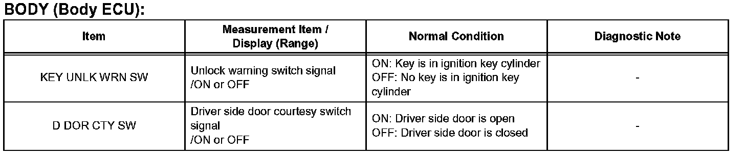 READ DATA LISTHINT: Using the intelligent tester's DATA LIST allows switch, actuator and other item values to be read without removing any parts. Reading the DATA LIST early in troubleshooting is one way to save time.