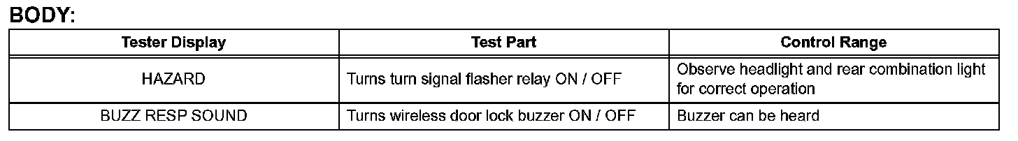 c. According to the display on the tester, preform the ACTIVE TEST.