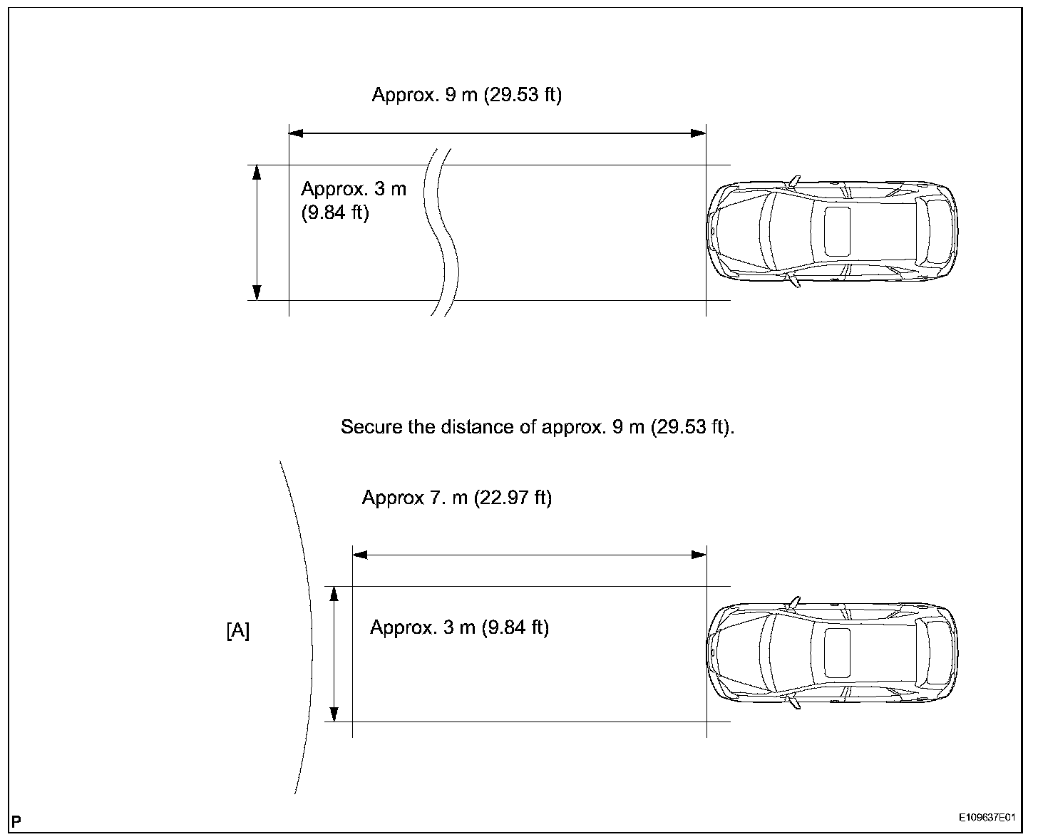 - Perform measurement indoors on a vehicle at least 9 m (29.53 ft) from the wall. When performing adjustment outdoors, make sure that it is not raining or snowing.