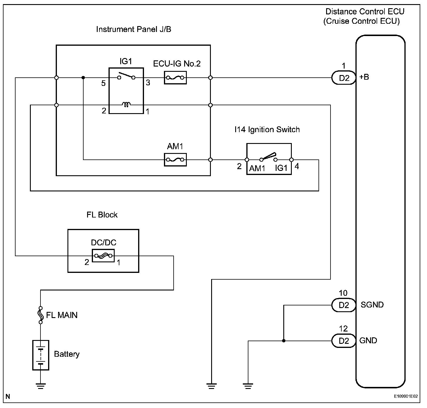 Distance Control ECU Power Source CircuitDESCRIPTION