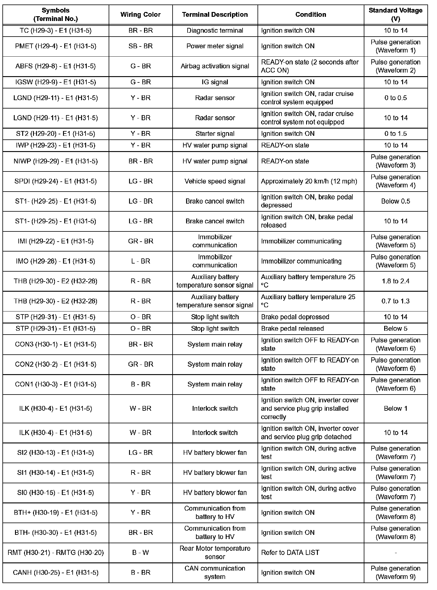 Terminals Of Control Module/Pinouts-HV Control ECU (Part 4):