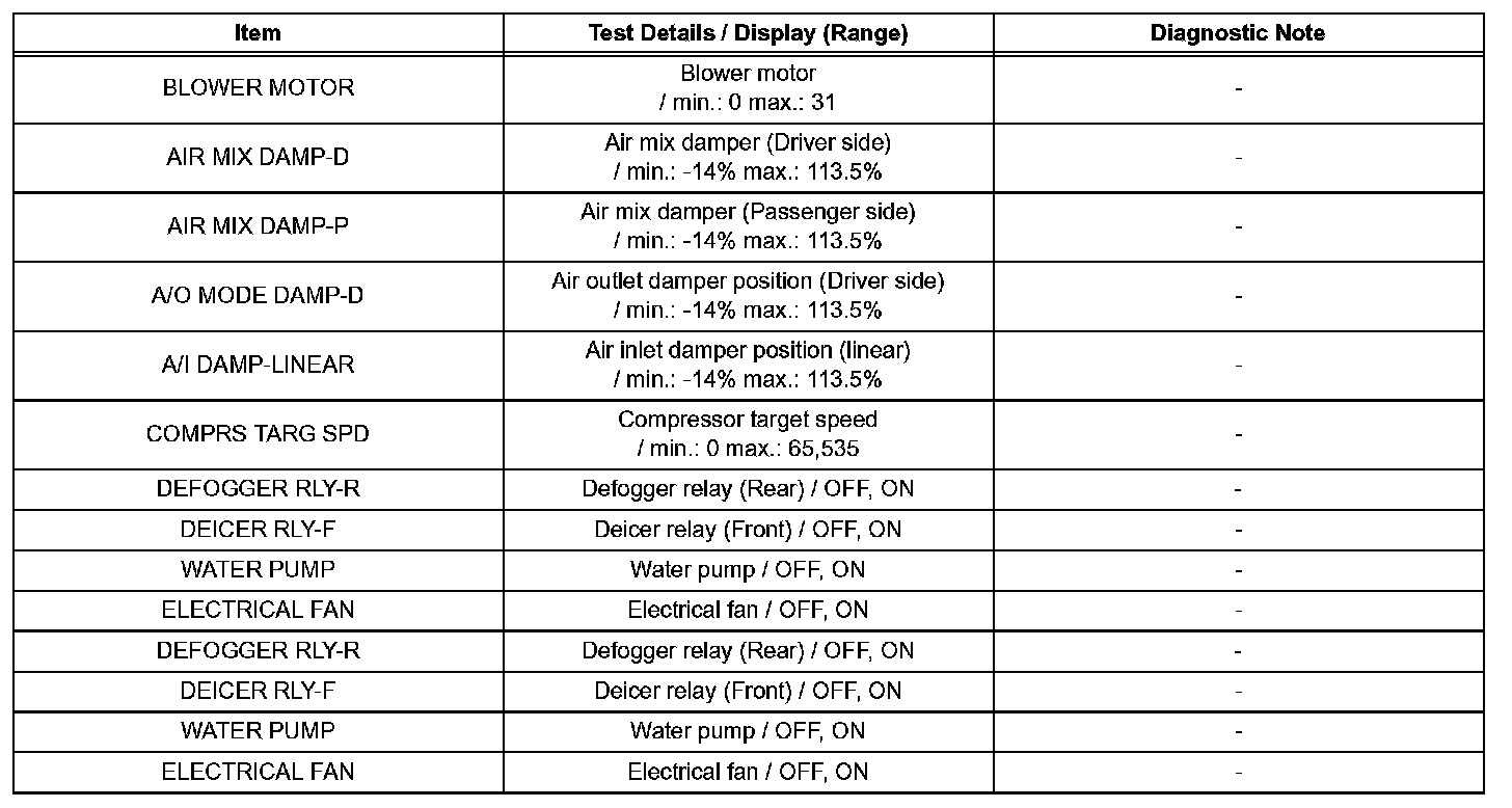 d. Enter the following menus: DIAGNOSIS / OBD/MOBD / AIR CONDITIONER / ACTIVE TEST.