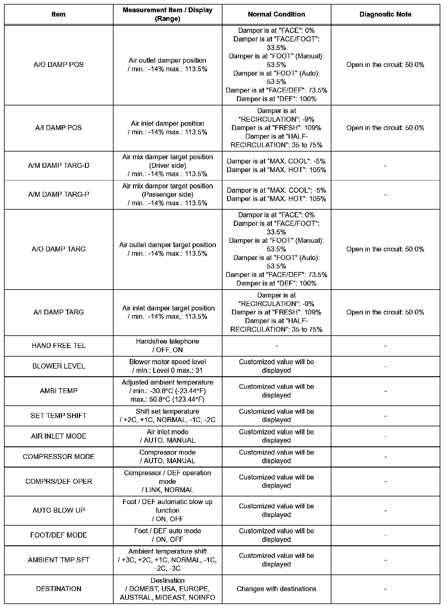 d. Enter the following menus: DIAGNOSIS / OBD/MOBD / AIR CONDITIONER / DATA LIST.