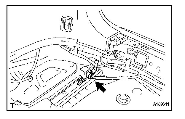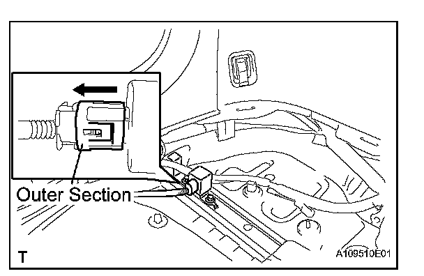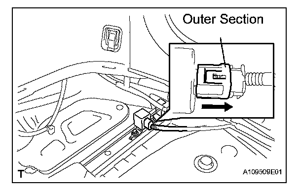 1. Move the outer section to the wire harness side as illustrated, then disconnect the rear circuit breaker sensor (LH).