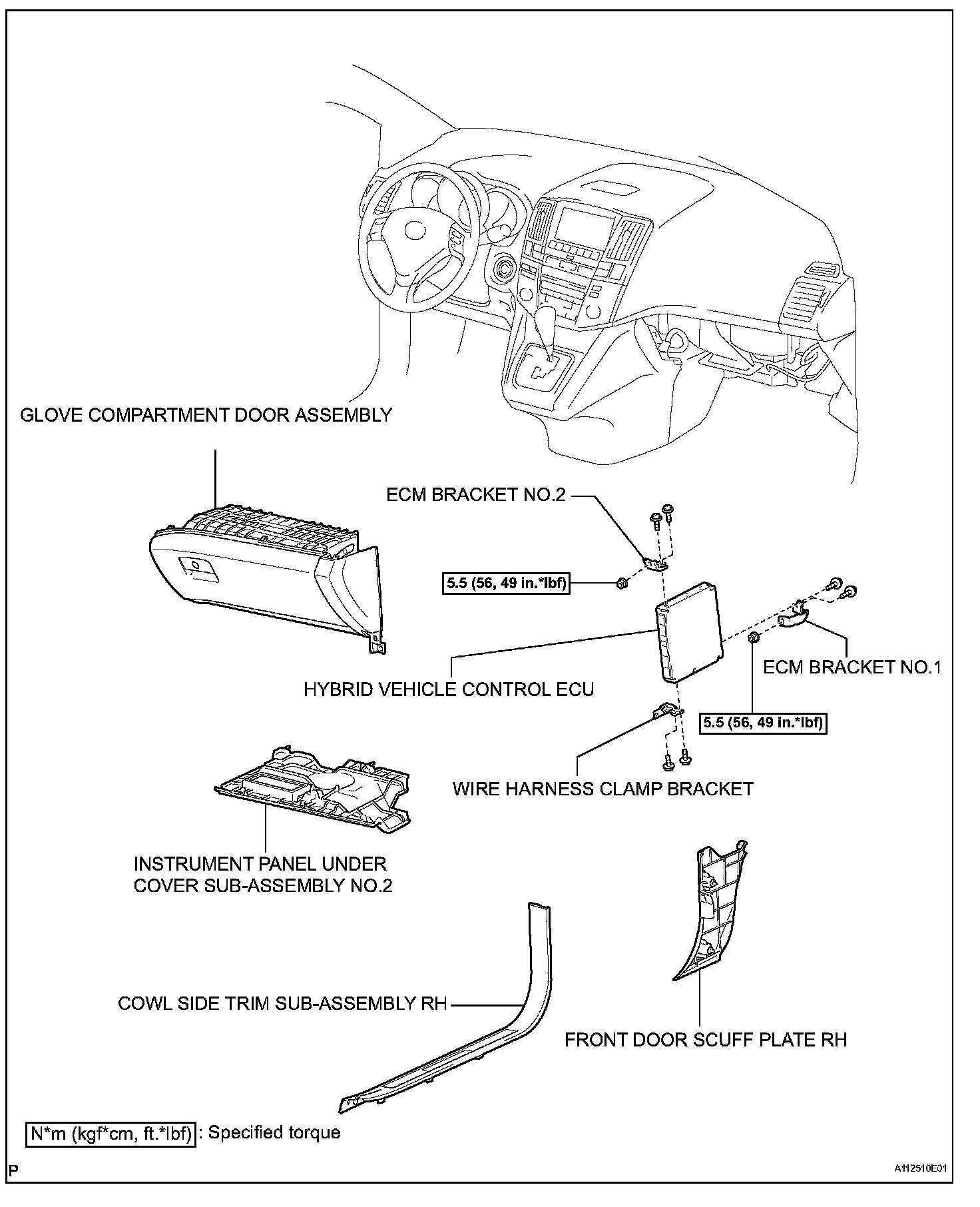 Torque: 5.5 N.m (56 kgf.cm, 49 in.lbf)