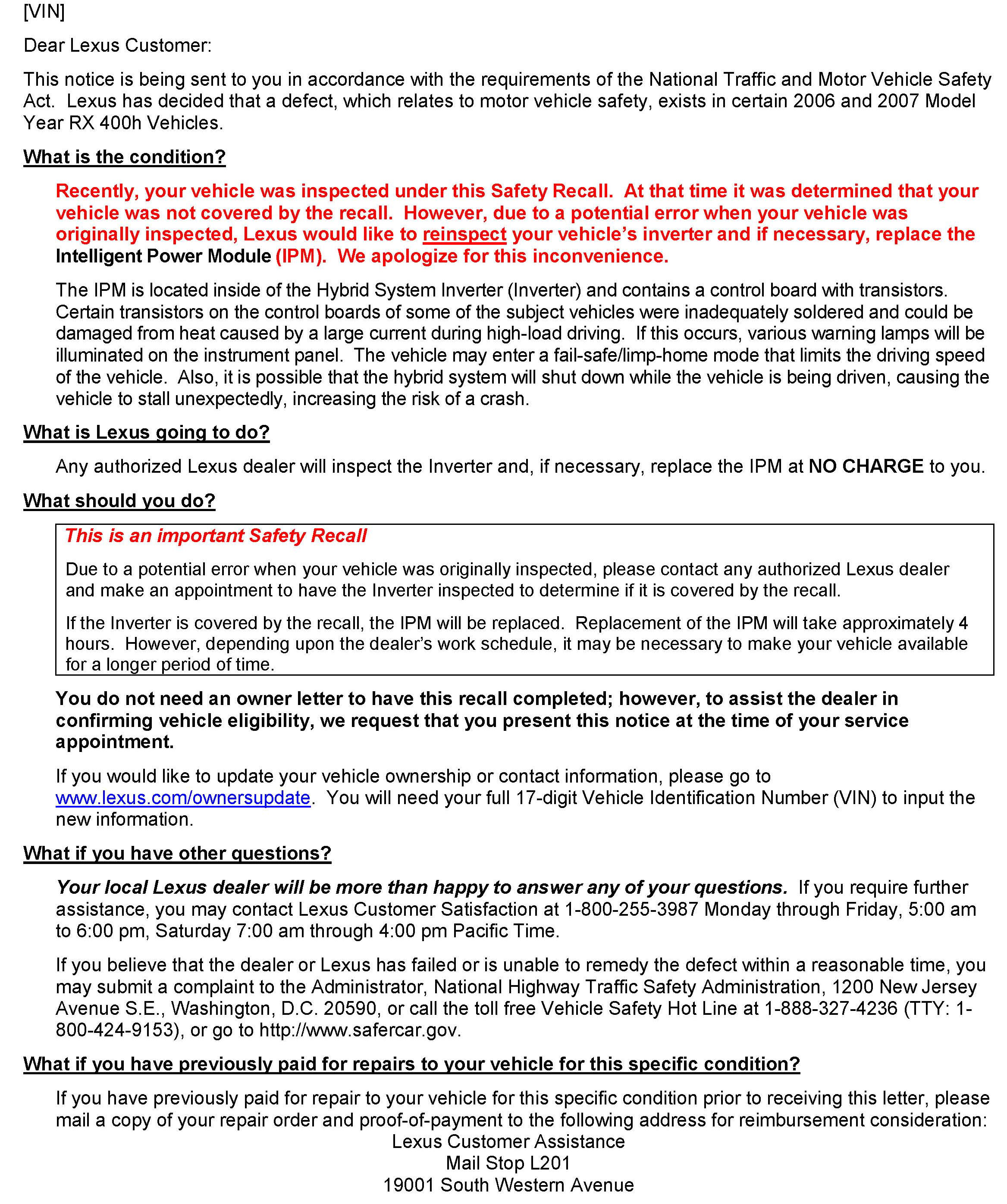 Recall - Hybrid Intelligent Power Module (IPM) Replacement