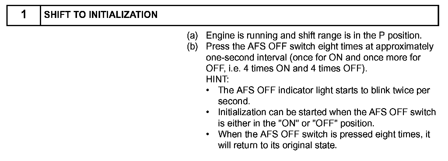 2. AFS ECU RE-INITIALIZATION (WHEN NOT USING INTELLIGENT TESTER)