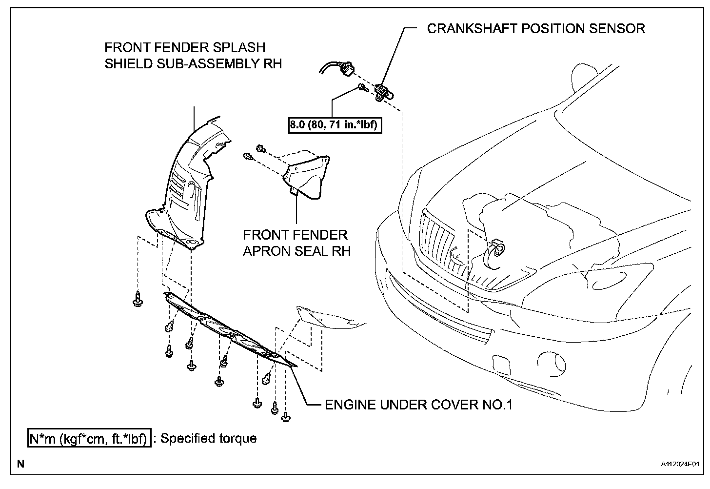 Torque: 8.0 N.m (80 kgf.cm, 71 in.lbf)