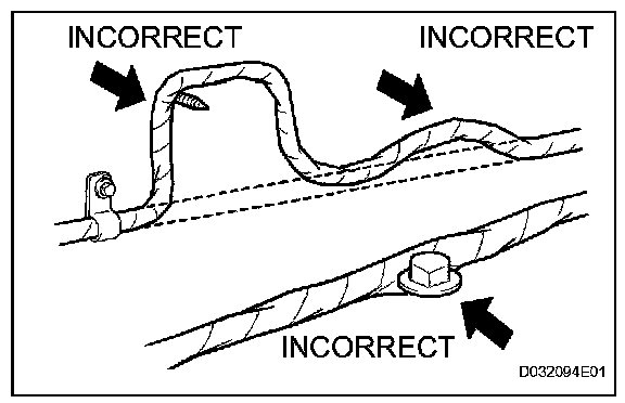 2. Never twist, pull or slacken the wire harness more than necessary.