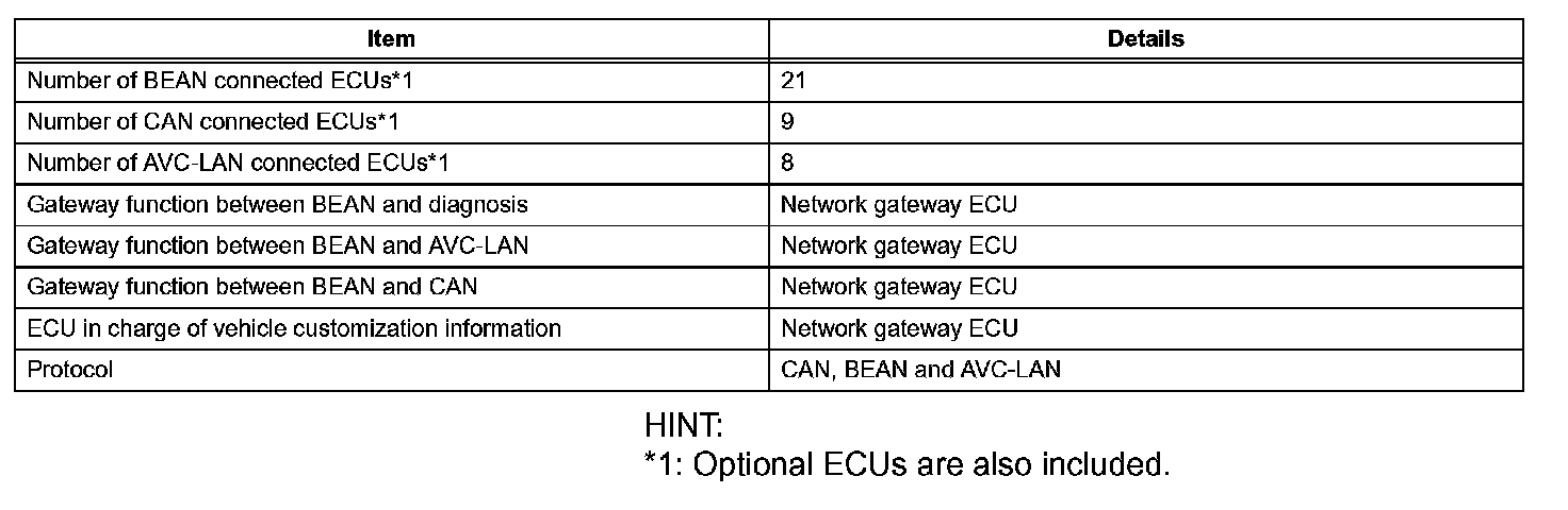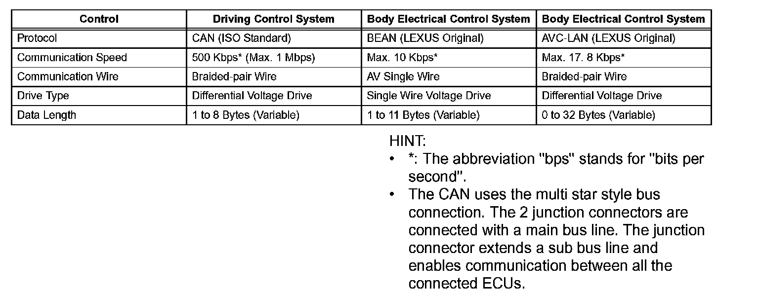 1. The CAN, BEAN and AVC-LAN protocols have set guidelines for data. The guidelines include communication speed, type of communication wire, drive type and data length. These guidelines are established to facilitate ECU data communication.