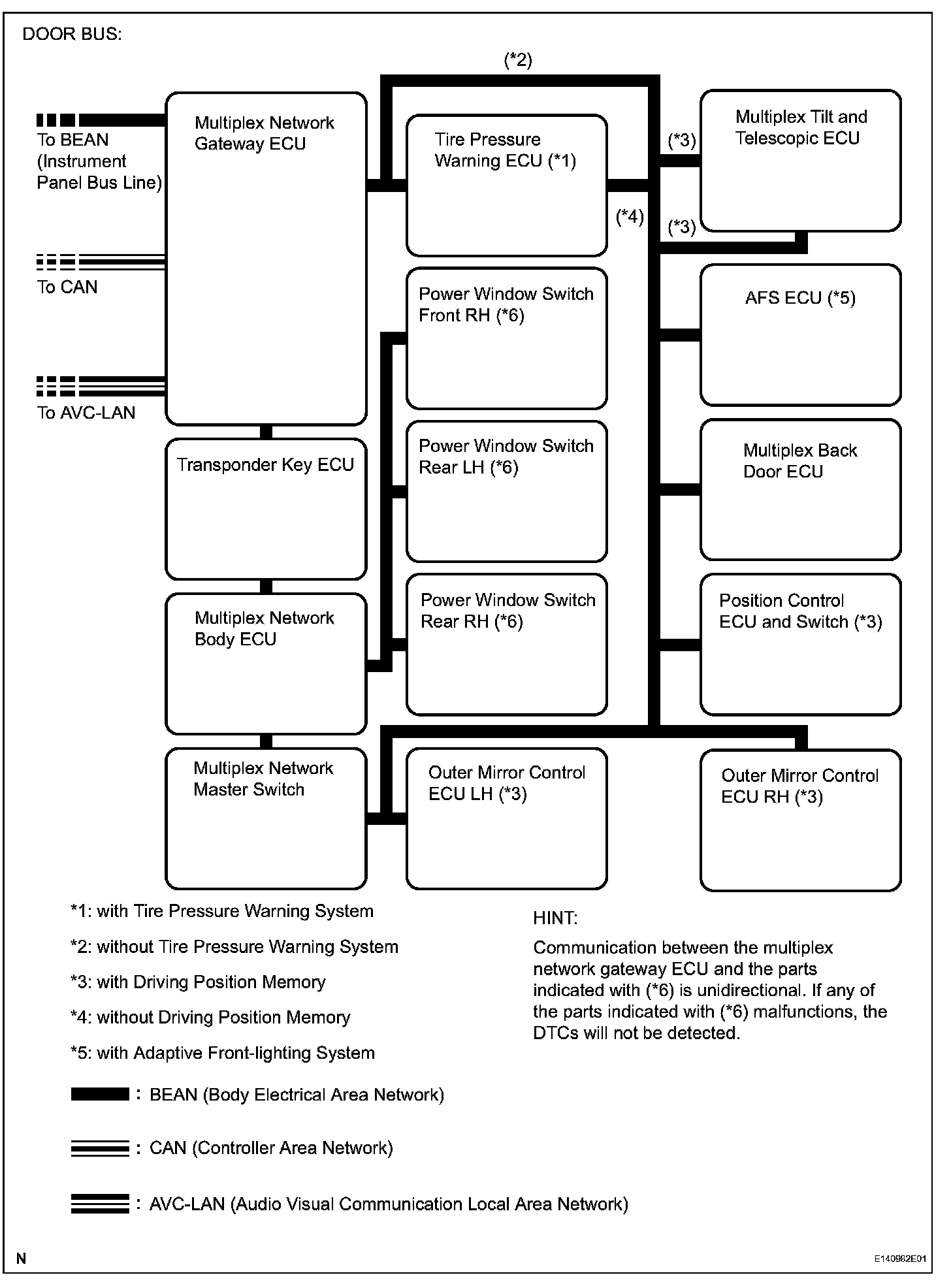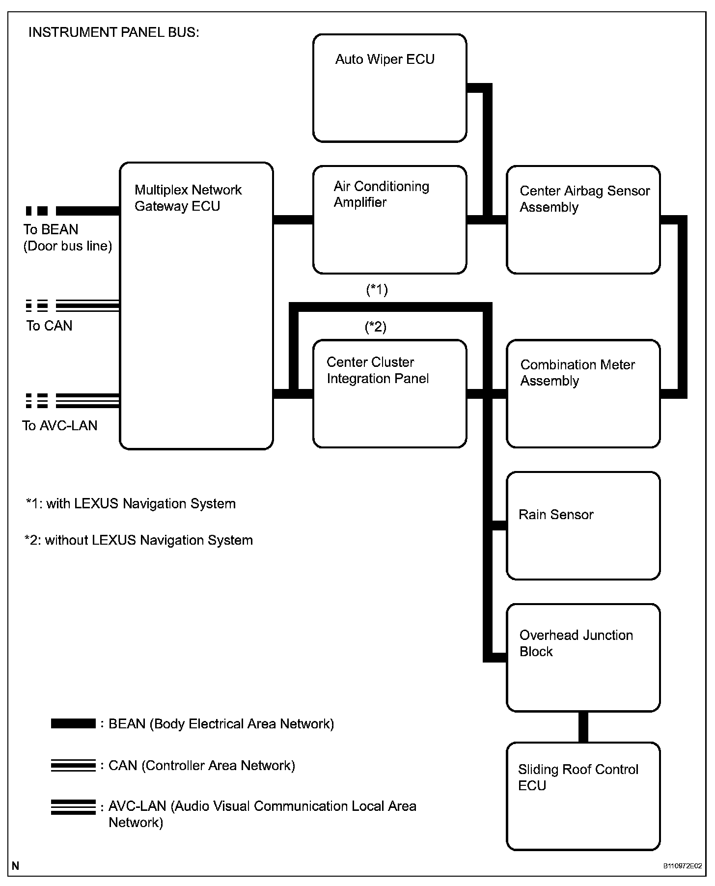 2. A single, Automobile Vinyl (AV) wire is used for BEAN communication. A braided-pair wire is used for CAN and AVC-LAN communication.