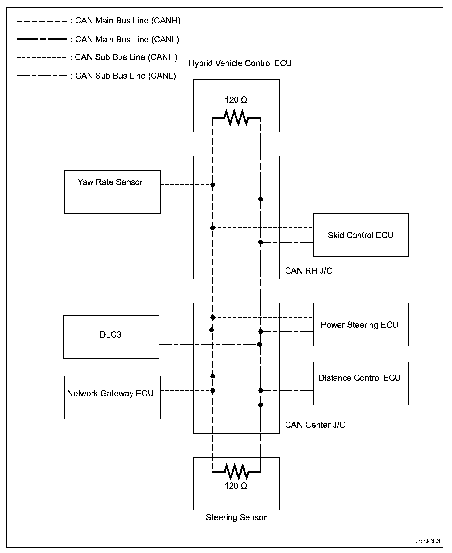 1. The sub bus line is a wire harness which diverges from the main bus line to an ECU or sensor.