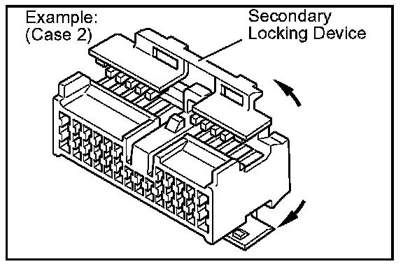 b. Use a special tool or the terminal pick to unlock the secondary locking device or terminal retainer.