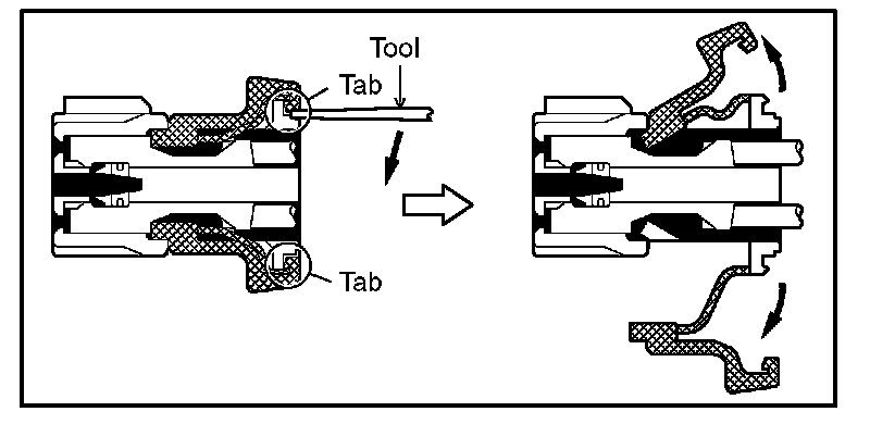 a. Locking device must be disengaged before the terminal locking clip can be released and the terminal removed from the connector.