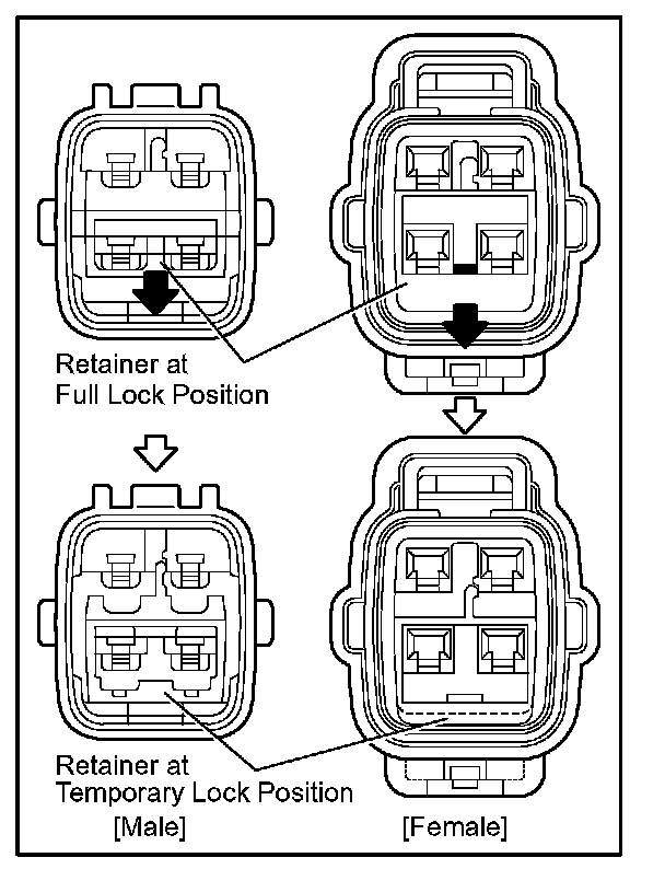 Insert the special tool into the terminal retainer access hole ( Mark) and pull the terminal retainer up to the temporary lock position.