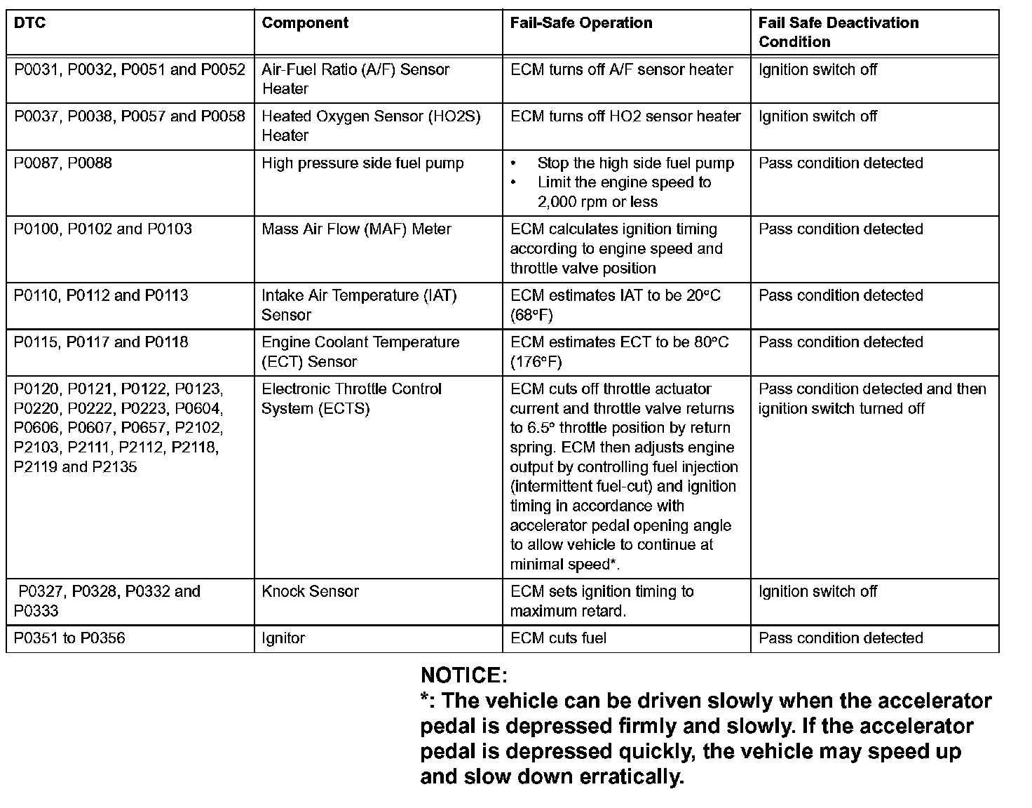 If any of the given DTCs are set, the ECM (Included in HV control ECU) enters fail-safe mode to allow the vehicle to be driven temporarily.