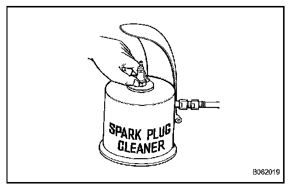 HINT: If there are traces of oil, remove them with gasoline before using the spark plug cleaner.