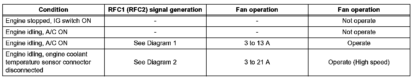 ^ When the fan amperage has a problem even if the RFC1 (RFC2) signal that has no problem, replace the cooling fan ECU.