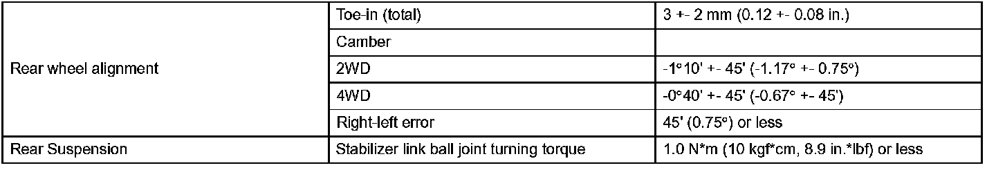 Rear Suspension Service Data: